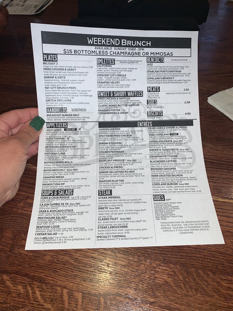 Welcome to Copeland's of New Orleans, where the vibrant flavors of Cajun and Creole cuisine come alive. Located in Slidell, LA, this casual dining gem offers a delightful menu that features a variety of seafood and steak options. Whether you're savoring a juicy steak or indulging in fresh seafood, each dish bursts with authenticity and flair.